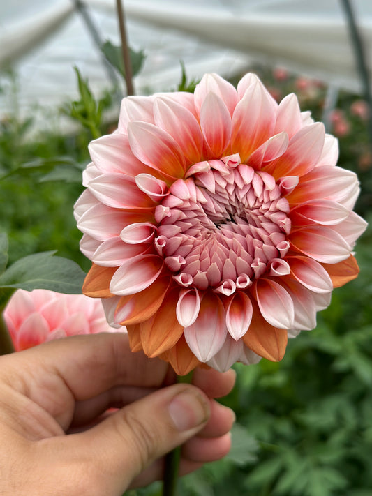 All Bell's dahlias are bred right here at the nursery and are suitable for garden growing and cut flowers. I've been hybridizing and breeding plants since studying horticultural science and starting the farm and nursery in 2012. Over the years the focus has turned solely to dahlias with dedicated tunnels and fields for breeding and growing new varieties.