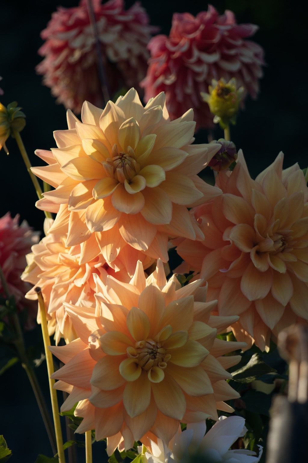 Soft amber petals with a warm apricot undertone, this one lights up beautifully in the golden hour. Blooms are 5 to 6 inches across with a loose, almost windswept form that brings movement and warmth to the field. It’s not showy in a loud way, but when the light catches it just right, it absolutely glows.