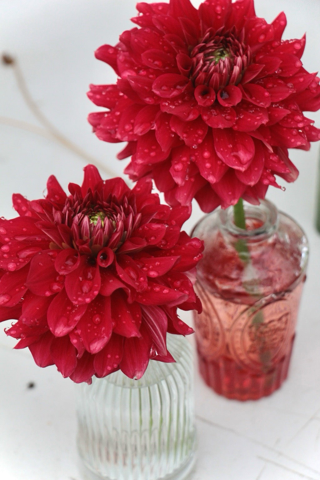 A true deep crimson that holds its color even in full sun. The blooms are bold and velvety, with full dinnerplate form and a strong upright posture that makes a statement in the field and the vase.