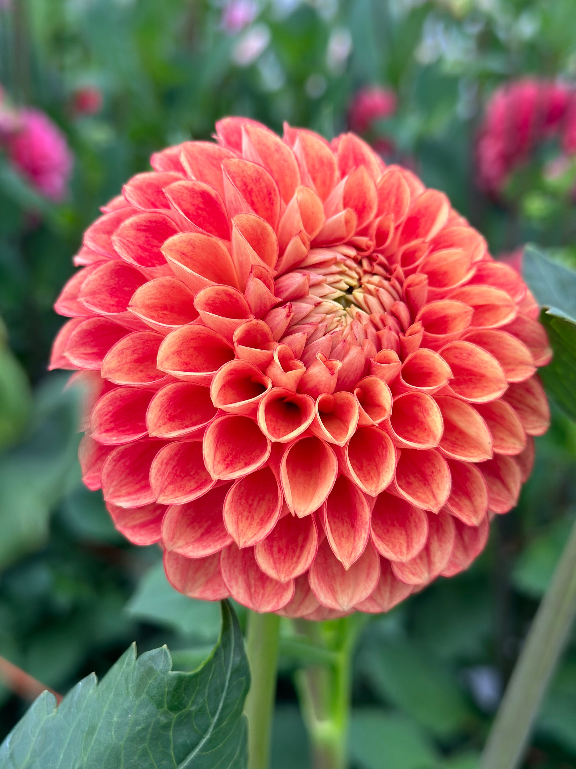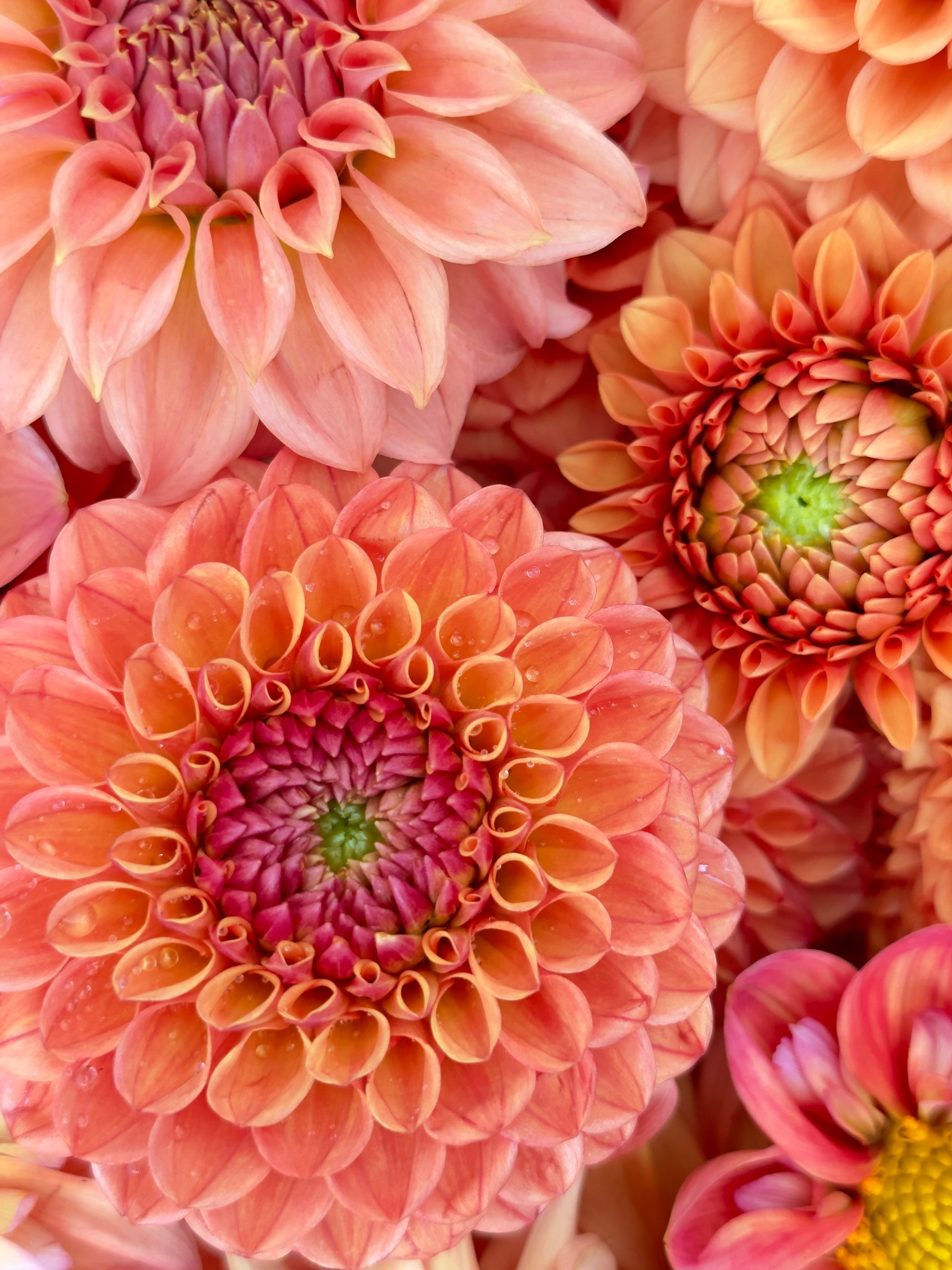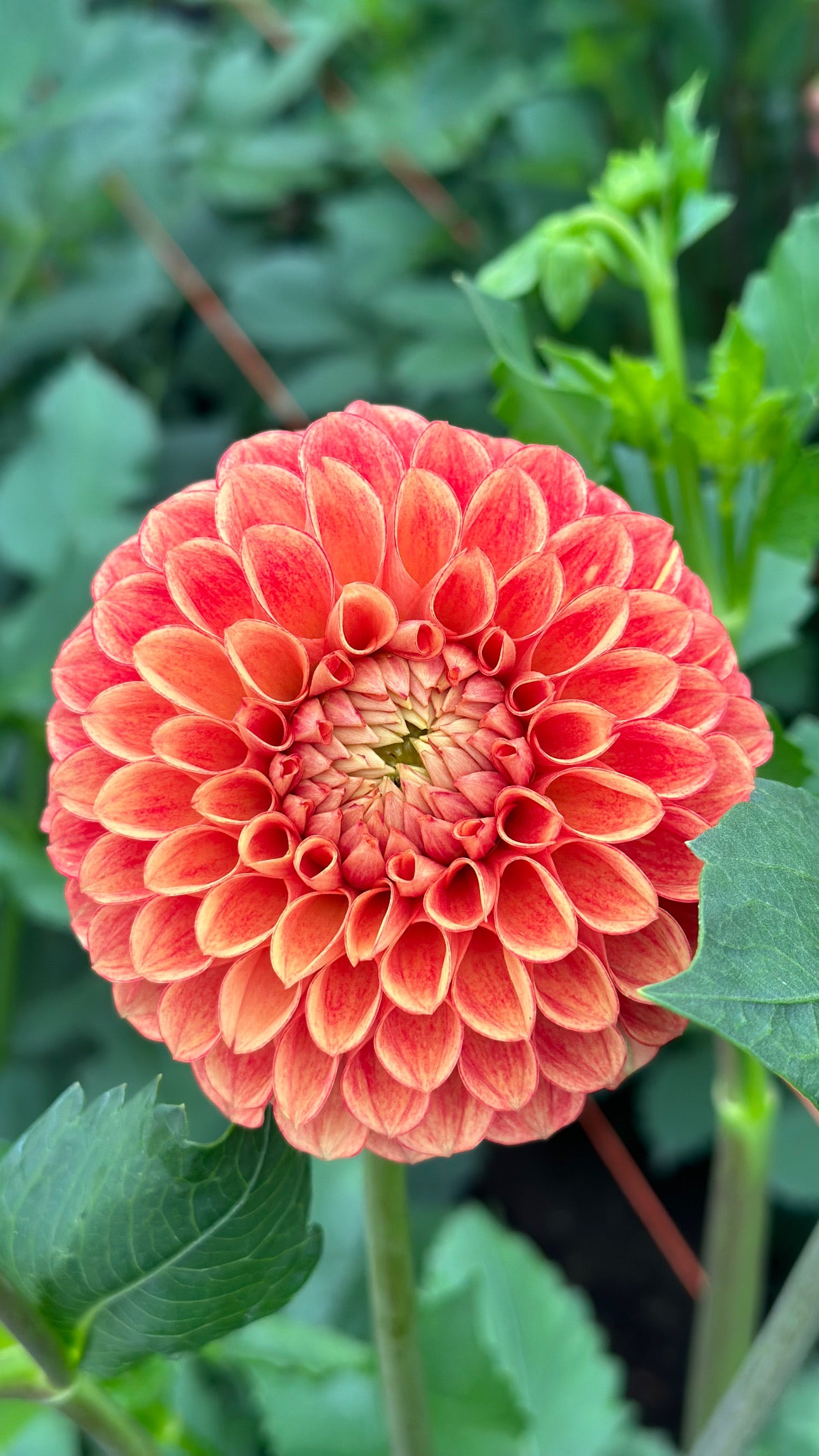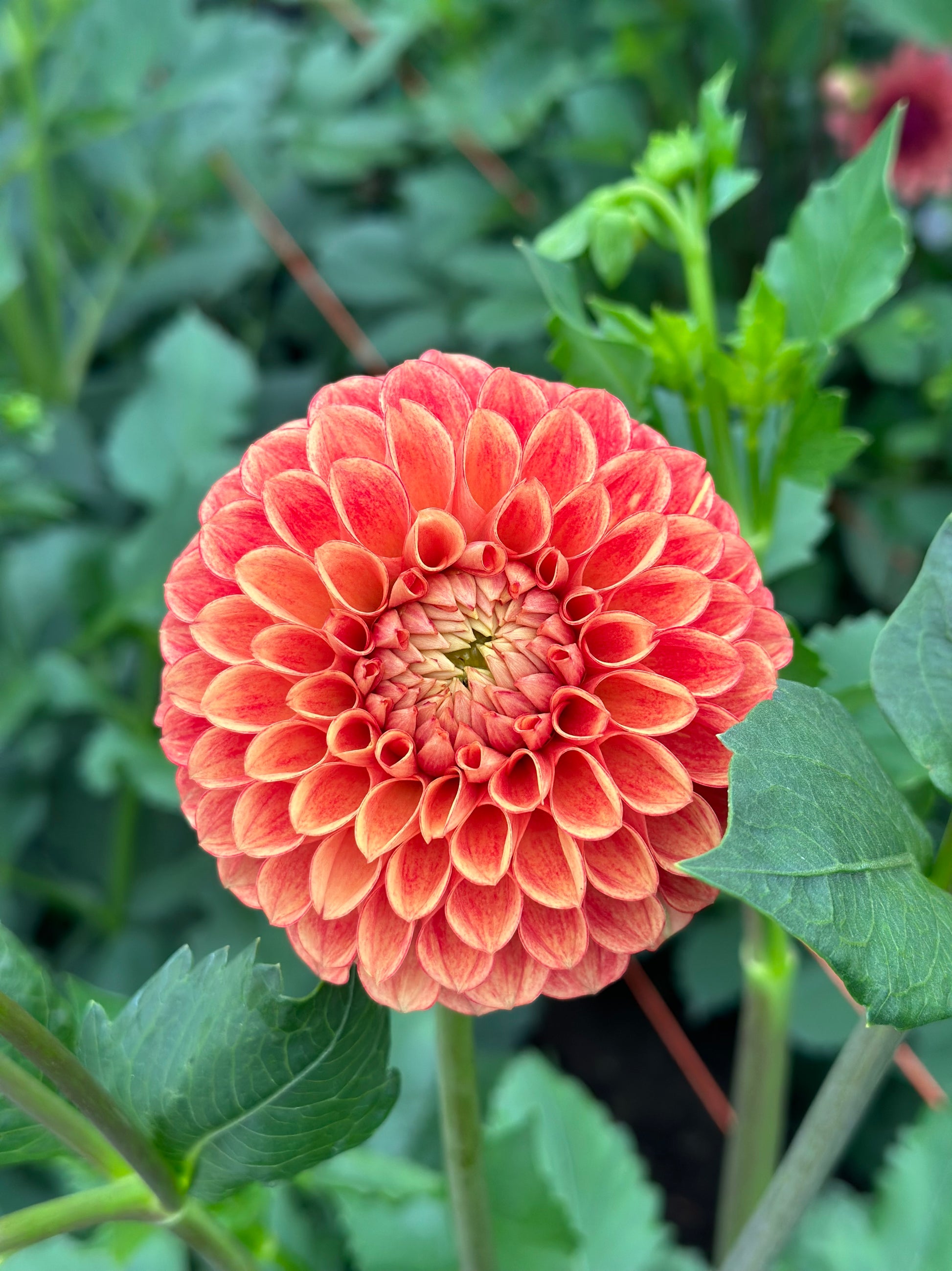 Bell’s Marieta brings a punch of heat, with coral-orange blooms and contrasting green eyes that hold their color even in the late season. Strong, upright stems make it an excellent cut flower, and its prolific blooming habit ensures a steady harvest. Tall and vigorous, this dahlia keeps producing with minimal fuss, offering rich, vivid color and sturdy performance throughout the season. A standout in both the field and the vase.