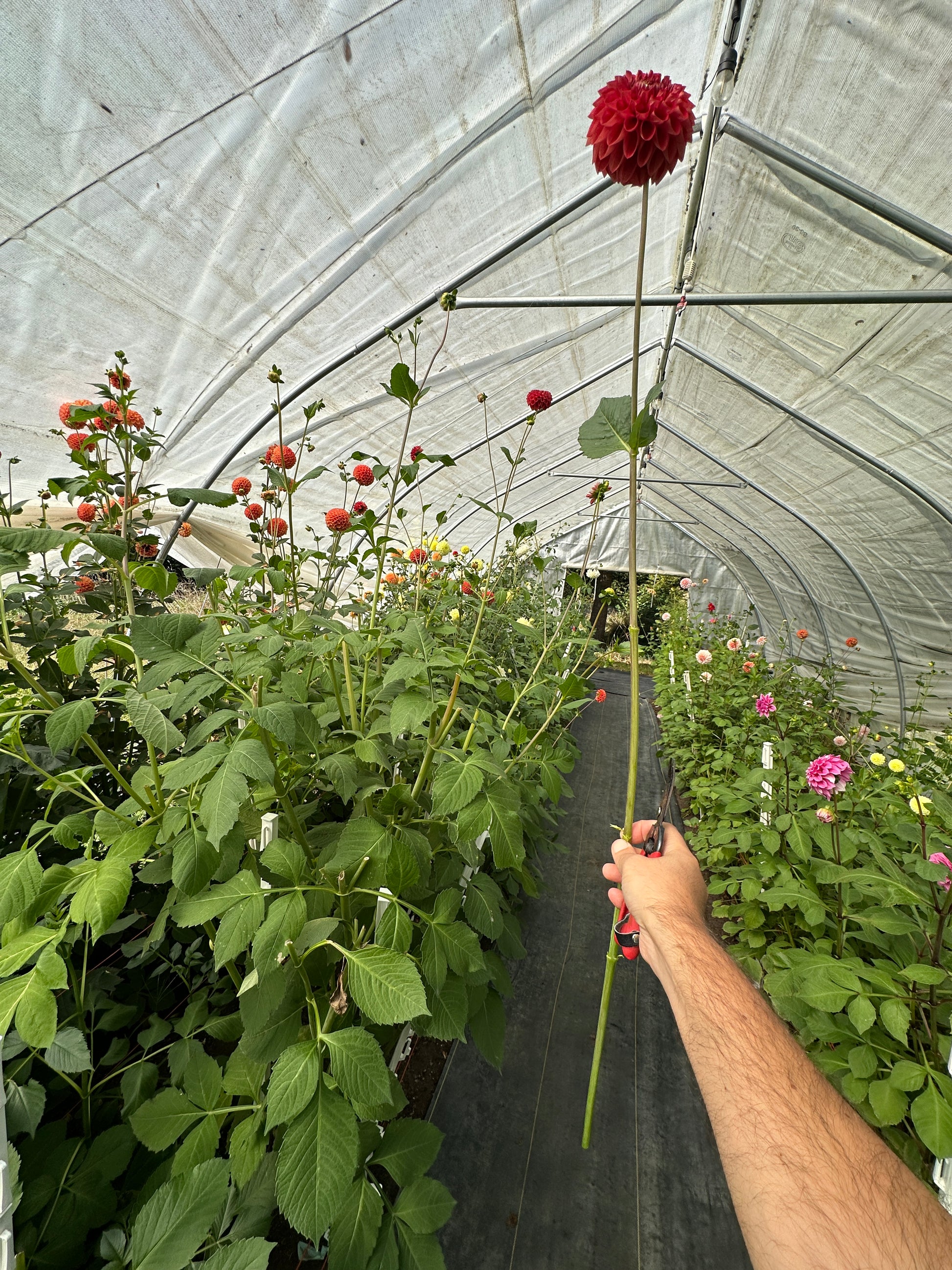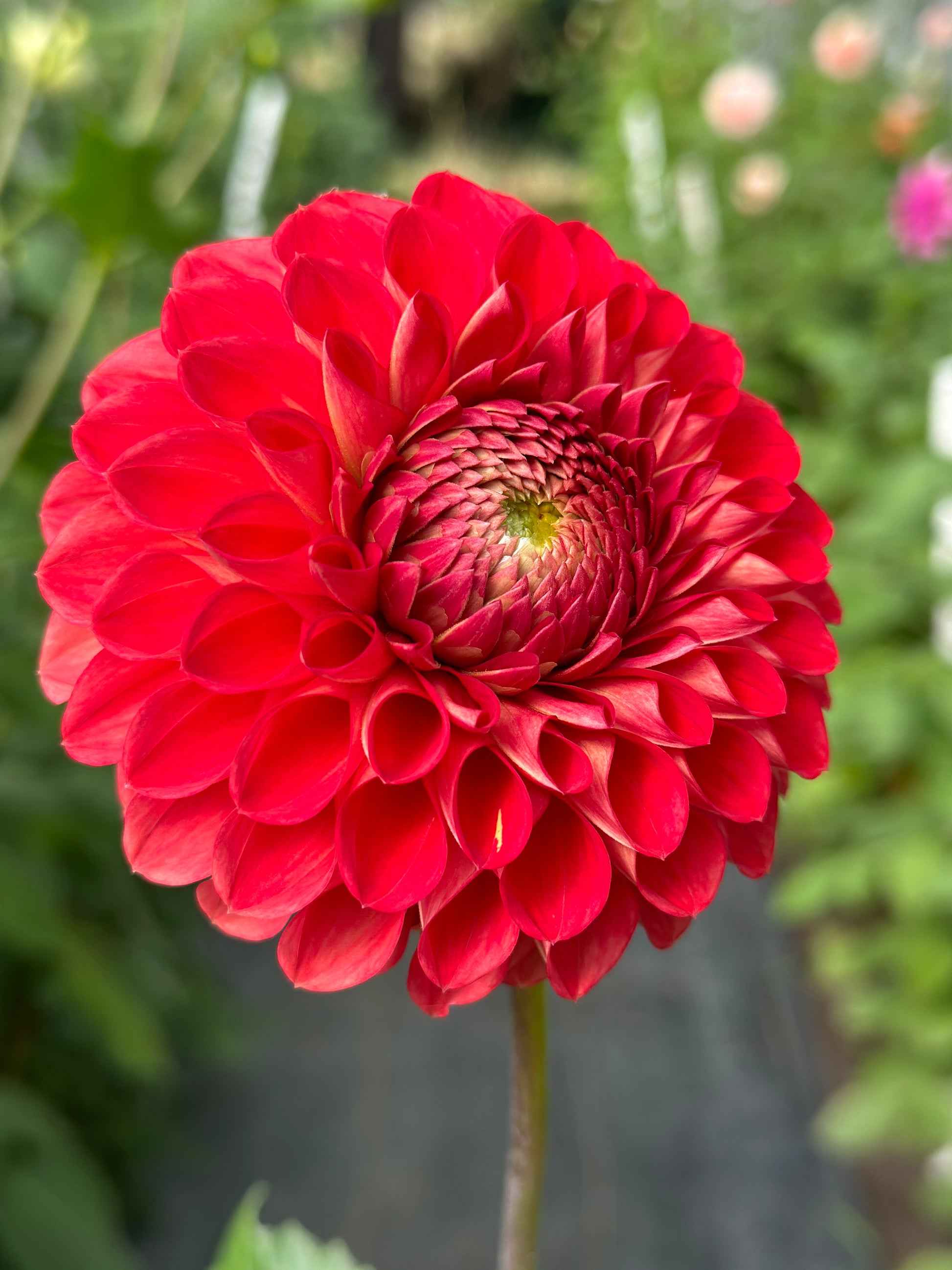 Bell's Narya is the tallest dahlia I’ve bred, almost hitting the high tunnel roof, standing proud and commanding attention in any garden. Its stunning red jewel blooms glow like polished rubies, easily making it my favorite red dahlia. This variety isn’t just about looks as it’s a standout performer as well.