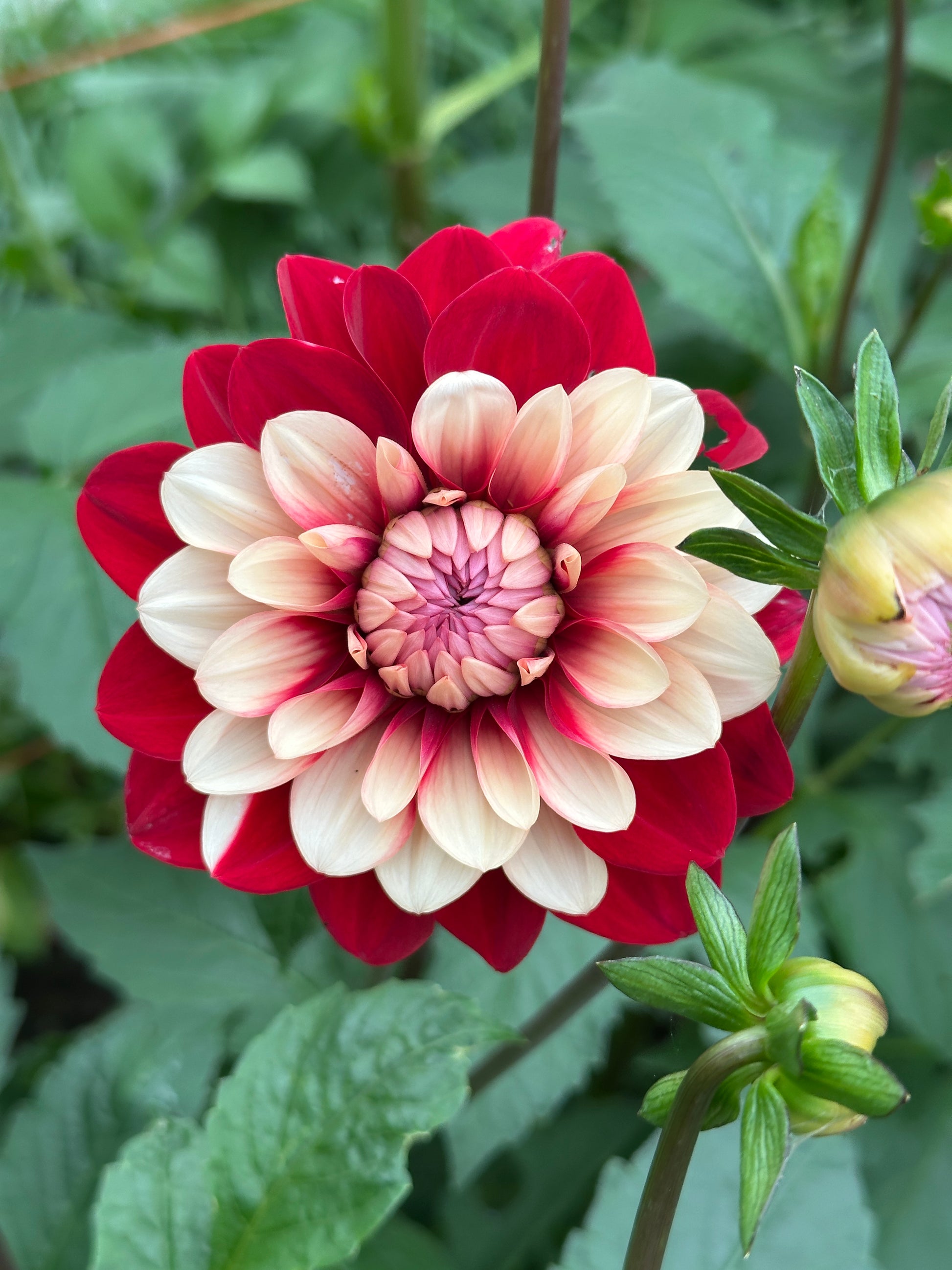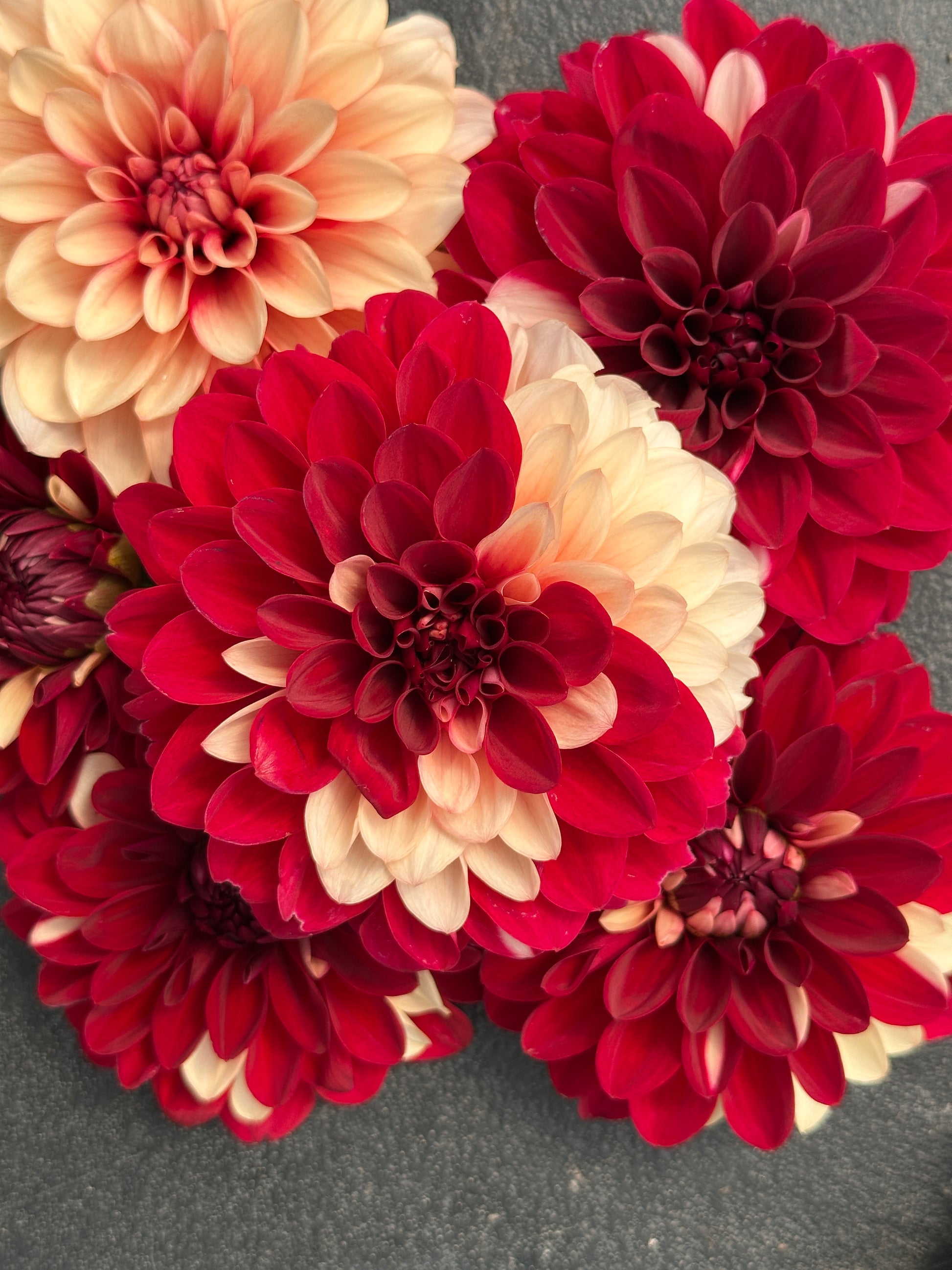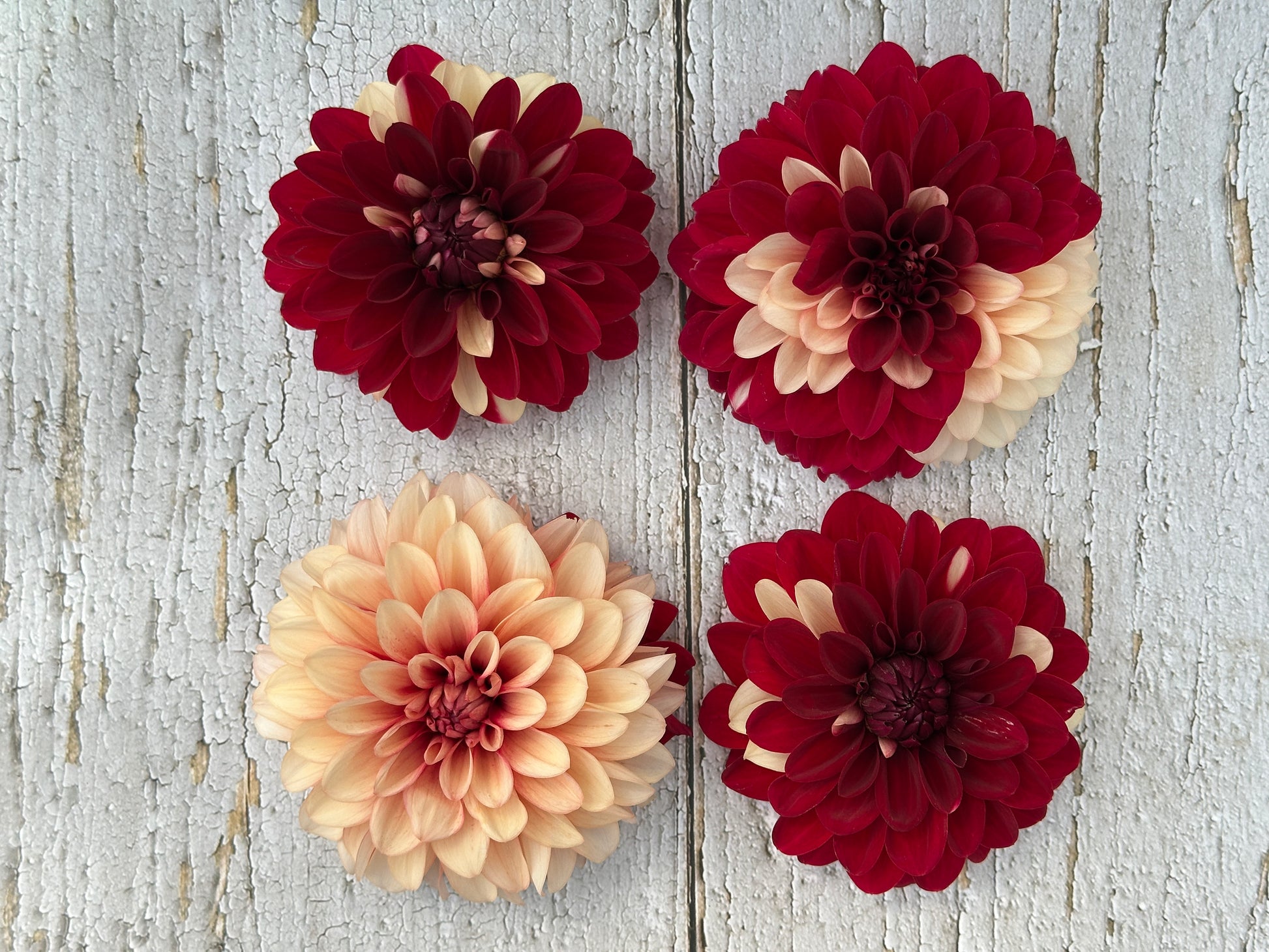Bell’s Soprano most often opens in a rich burgundy. As the bloom develops, creamy blush petals begin to push forward, contrasting with the darker petals behind them. At times the cream shows up in scattered splotches or clustered patches, so no two flowers are quite the same. Blooms average 4–5 inches and the plant stays compact at 3–4 feet, producing plenty of useful stems for cutting and garden display.