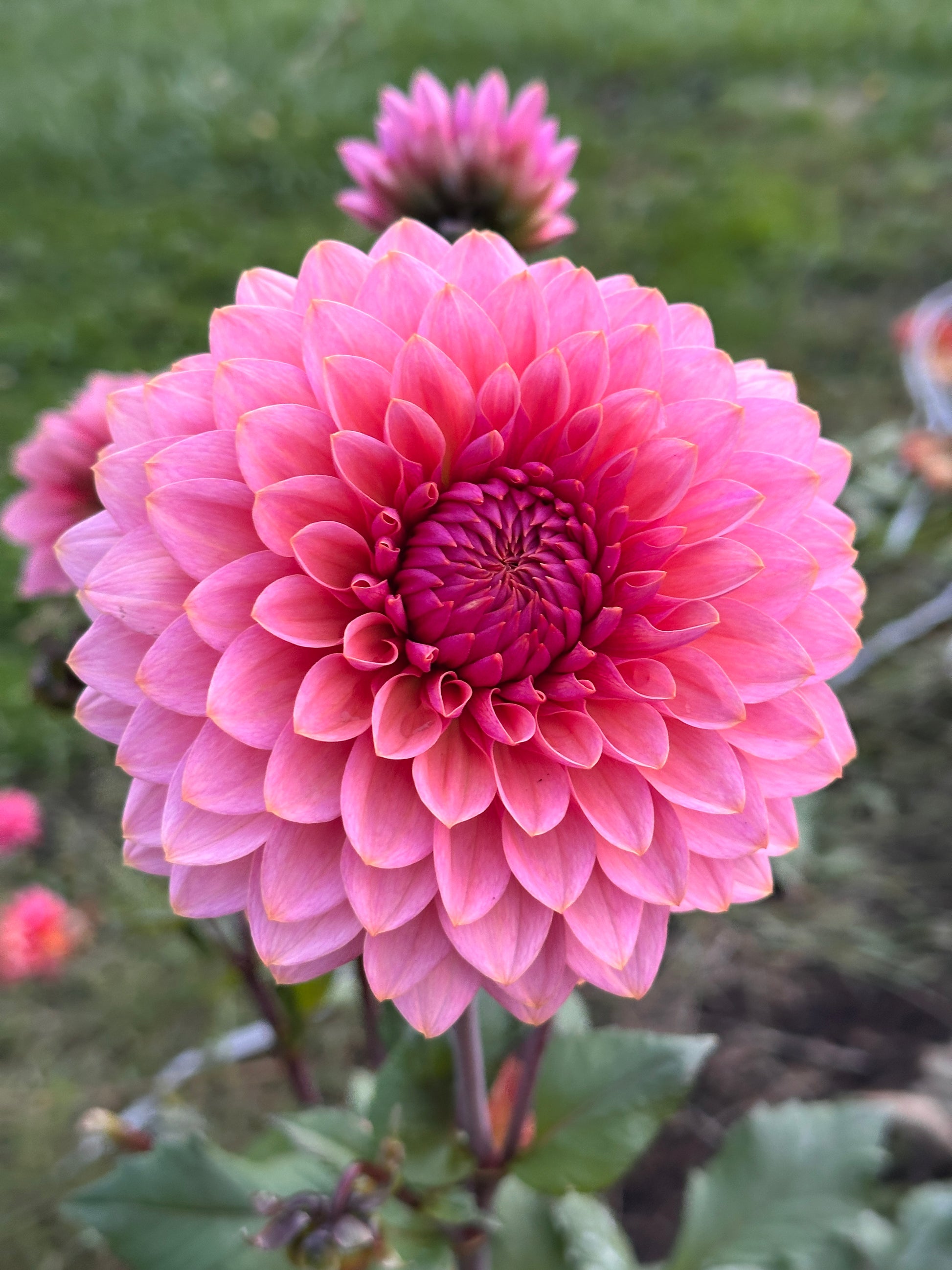 Sweet Sanne produces perfectly formed blooms in shades of pink that shift slightly with the light. The petals are smooth and uniform, opening into a rounded, balanced shape that looks as good in the field as it does in the vase. The stems and foliage are a lovely dark tone.
